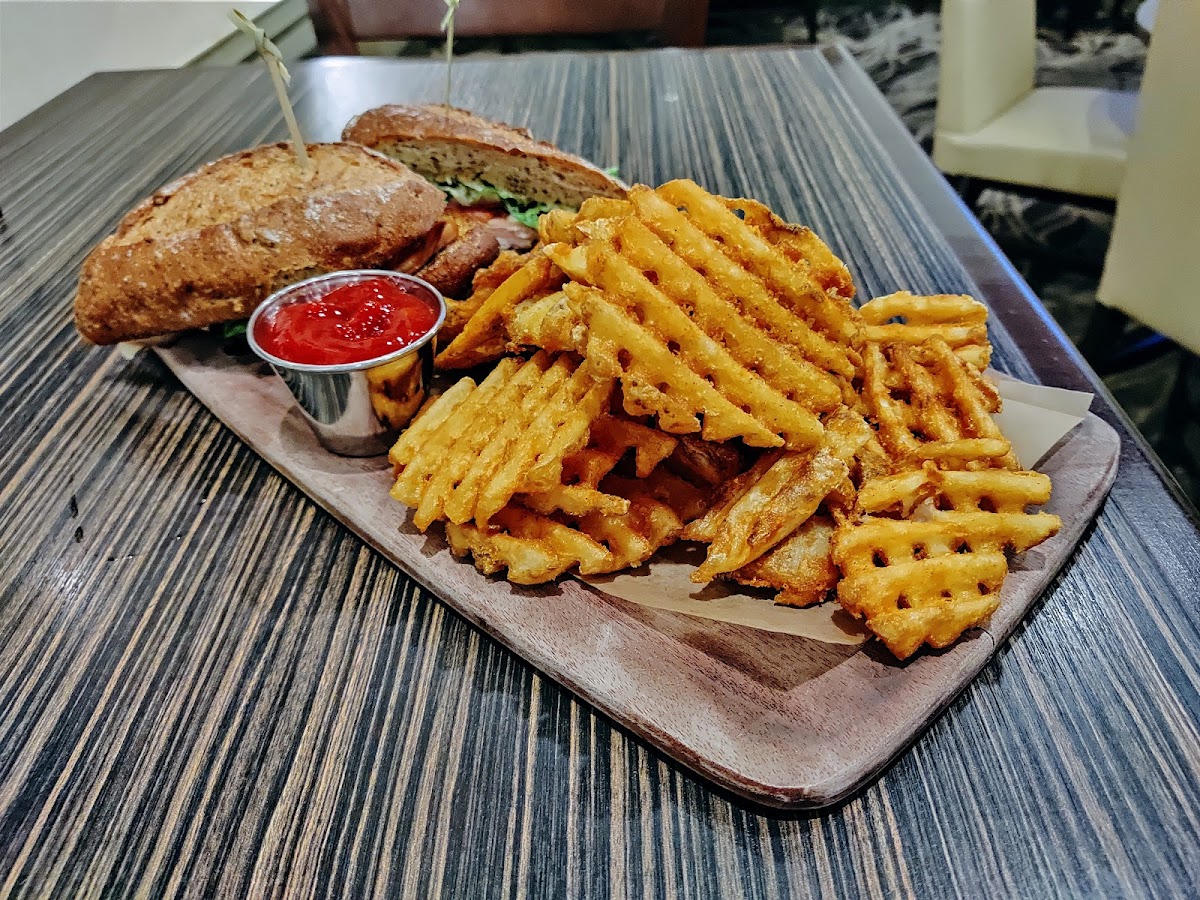 As you wind down after your meal, indulge your sweet tooth with the Doubletree Cookie Ice Cream Sandwich (US$11.00), where the warmth of the cookie meets creamy vanilla ice cream, drizzled in chocolate. Or savor the Cheesecake topped with fresh berries and whipped cream (US$12.00) that provides a refreshing end to your experience.